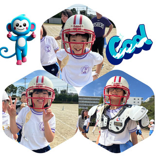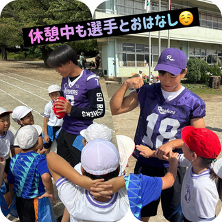 今日は、立教大学アメフト部Rushersメンバー(キャプテンDB武中選手、WR石川選手、今井MG、OBの長田さん)と新座市立栄小学校の3年生36名の子どもたちとフラッグフットボールの授業をしてきました。